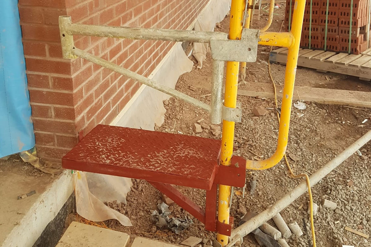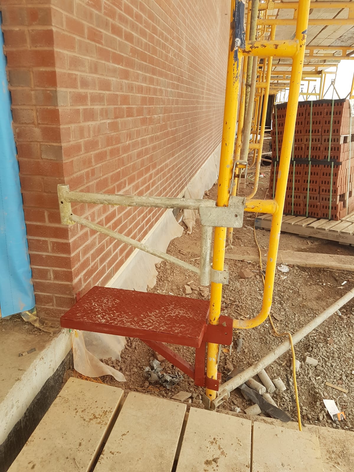 • The safety arm would be a platform to stand on when lifting planks on and off the scaffold structure in a safe manner