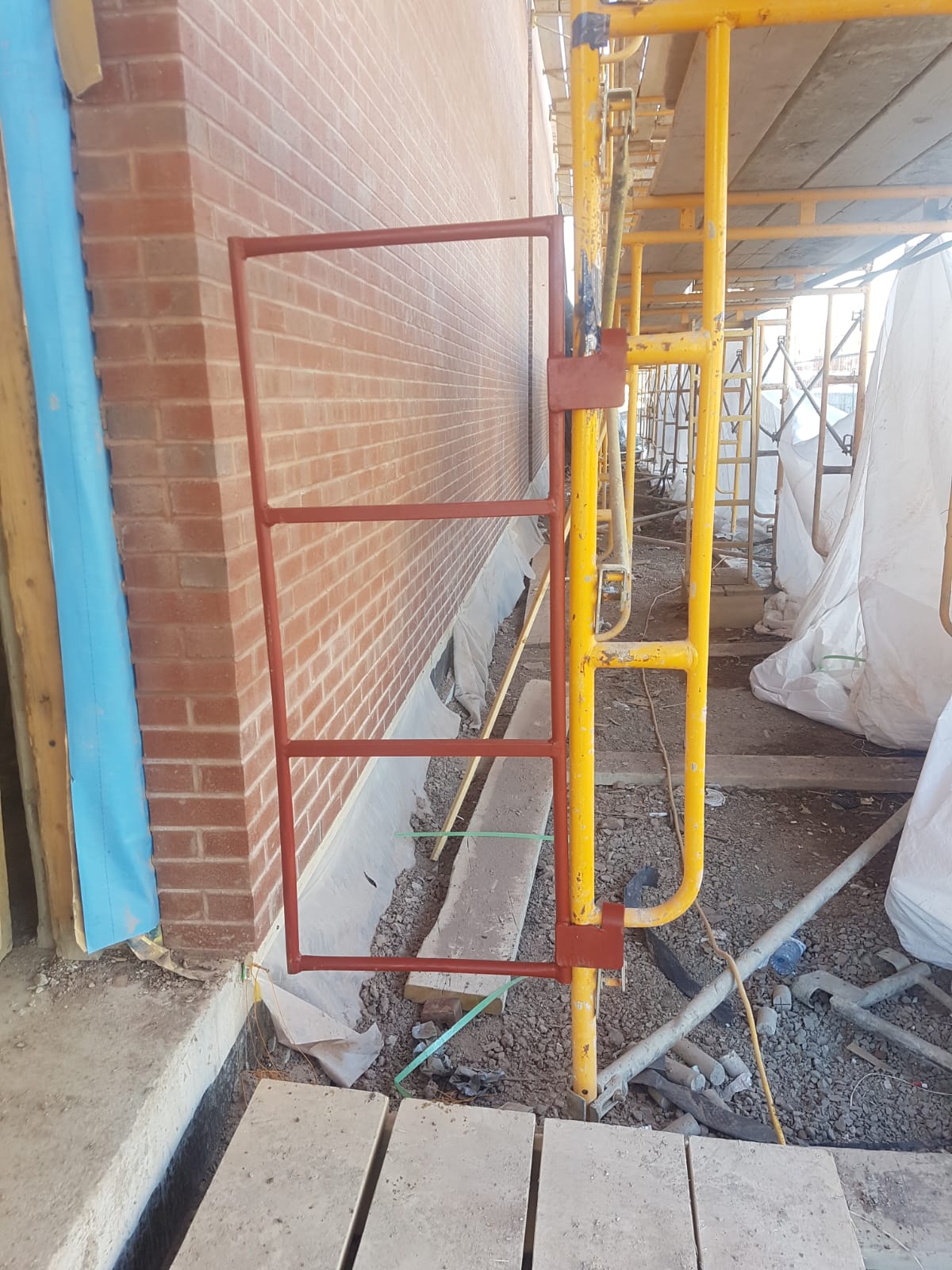 • The safety gate would be developed for the end of the scaffold to protect from falls on the ends of the scaffolding structure
